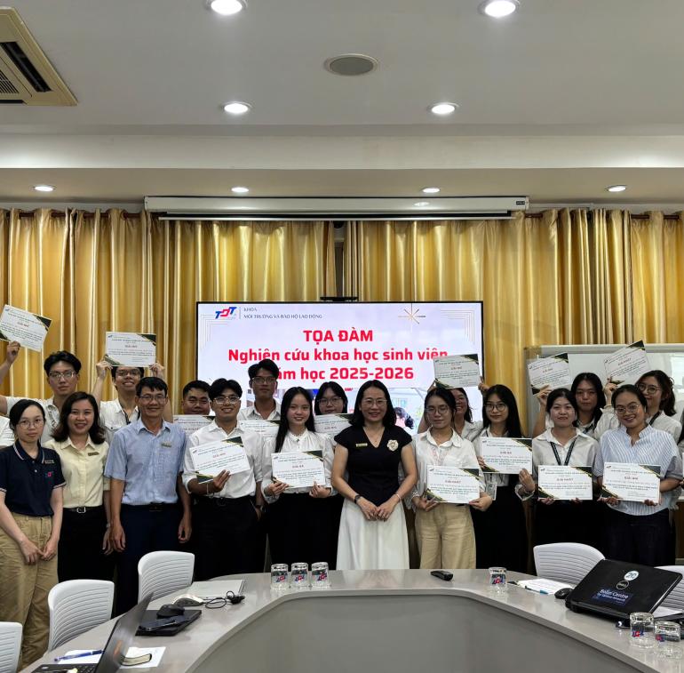 Nhằm tổng kết kết quả Nghiên cứu khoa học sinh viên năm học 2024-2025 và phát động phong trào Nghiên cứu khoa học sinh viên năm học 2025-2026. Khoa Môi trường và Bảo hộ lao động tổ chức buổi tọa đàm vào ngày 01/10/2025, tại Phòng C010 (Phòng họp C).