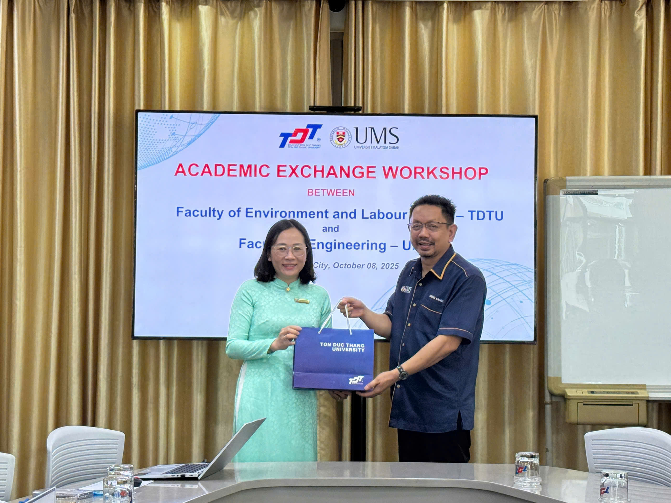 On the morning of October 8, 2025, at Meeting Room C – Ton Duc Thang University (TDTU), the Faculty of Environment and Labour Safety (ENLABSAFE) organized an Academic Exchange Workshop with the Faculty of Engineering – Universiti Malaysia Sabah (UMS).