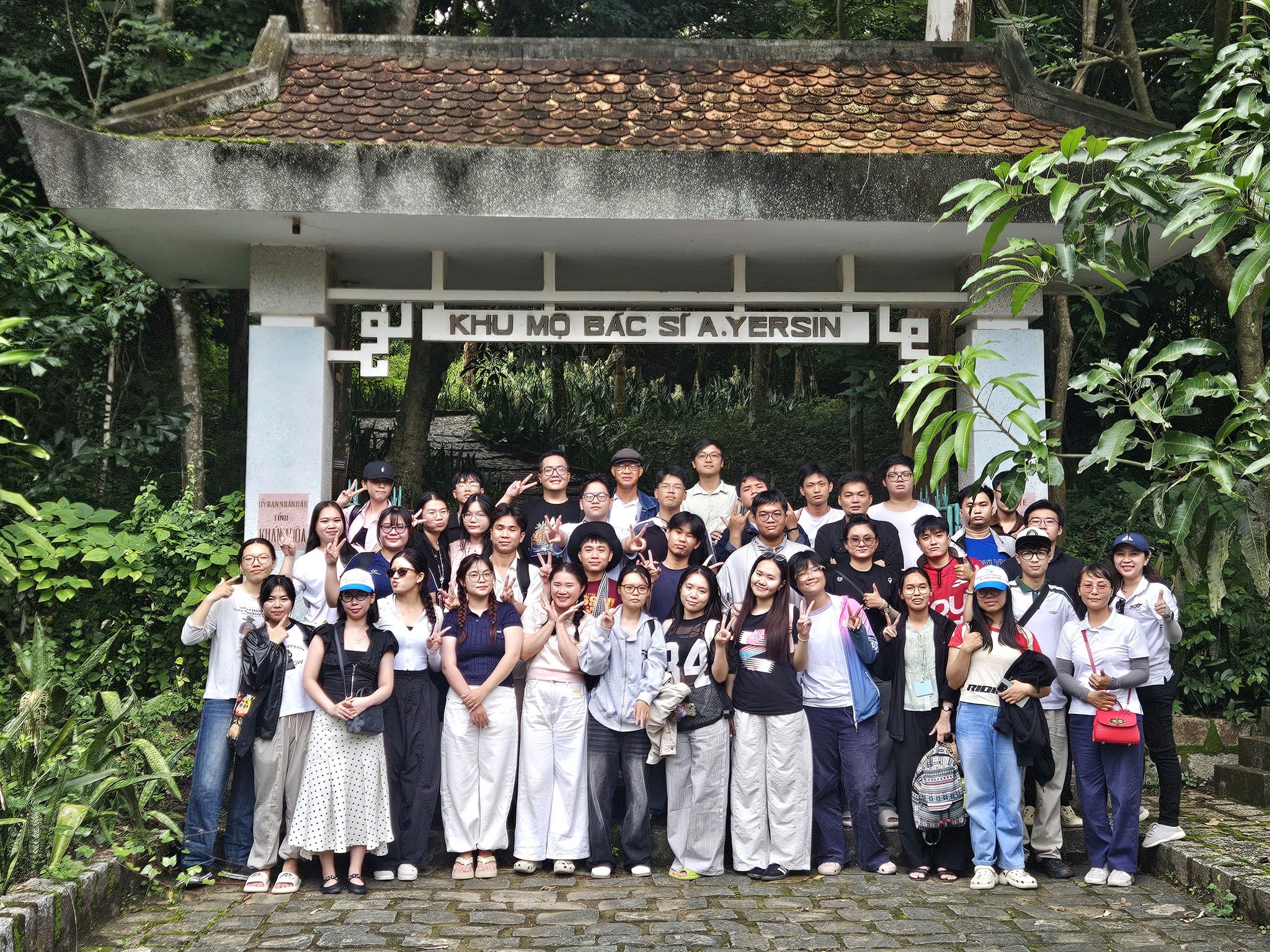 On the second day, the group explored the Hòn Bà Nature Reserve, a biodiversity hotspot of Khánh Hòa Province. Guided by instructors, students learned to assess species richness, population density, habitat diversity, and ecosystem health, realizing that every tree and insect tells a story about natural balance. The group also visited the House and Memorial Site of Dr. Alexandre Yersin, a physician and scientist who devoted his life to Vietnam. The visit inspired great admiration for his dedication, humility, and scientific passion — a shining example for today’s environmental science students.