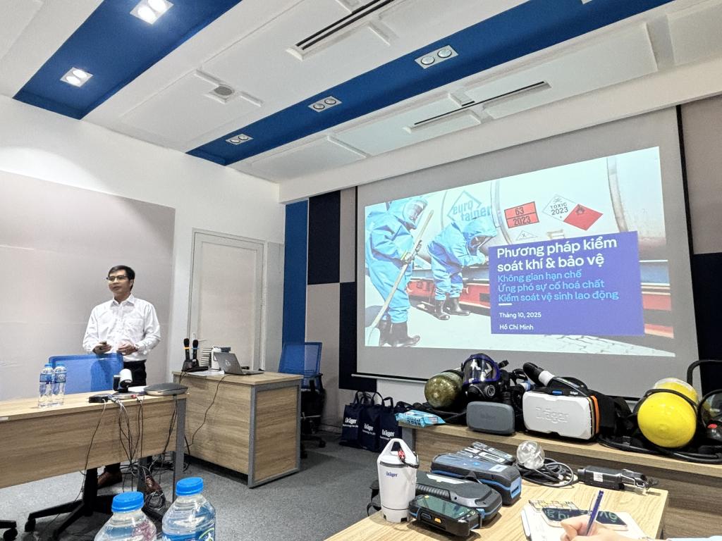 During the session, Mr. Nguyen Thanh Tam, a specialist from Draeger Vietnam, delivered an insightful presentation on Gas Detection & Protection Methods, covering the following topics: