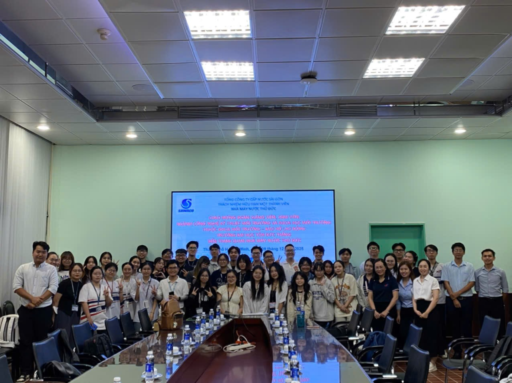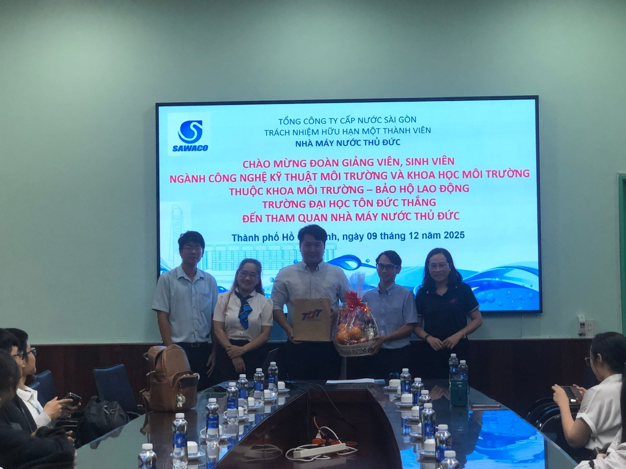 To facilitate student interaction with businesses in the water supply and drainage sector and to broaden practical knowledge in their specialized field, on the morning of December 9, 2025, a delegation of lecturers and students from the Faculty of Environment and Labour Safety organized a study tour at the Thu Duc Water Treatment Plant of the Saigon Water Supply Corporation (SAWACO), Ho Chi Minh City.