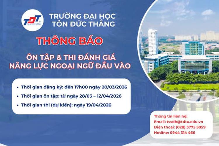 Thông báo về khóa ôn tập và kỳ thi đánh giá năng lực ngoại ngữ phục vụ tuyển sinh trình độ thạc sĩ tại Trường Đại học Tôn Đức Thắng
