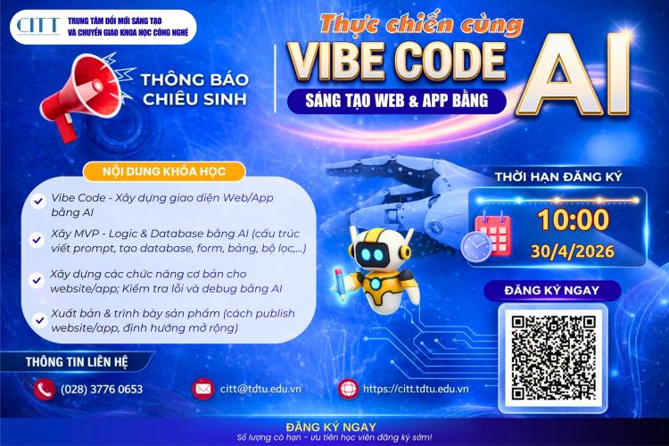 Thông báo chiêu sinh khóa học “Thực chiến cùng Vibe Code AI – Sáng tạo Website & Ứng dụng trên nền tảng AI”