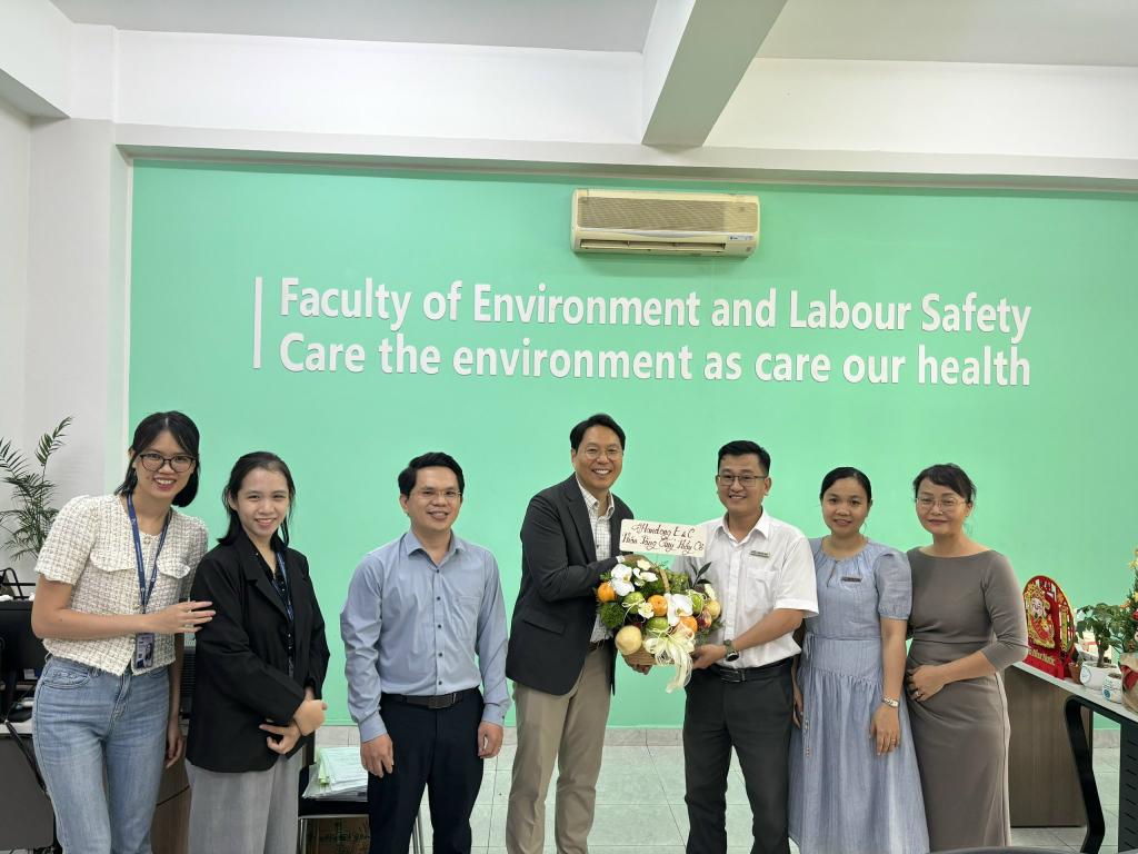 Ngày 11/12/2025, tại văn phòng Khoa C005, cơ sở Tân Phong, Khoa Môi trường và Bảo hộ Lao động, Trường Đại học Tôn Đức Thắng đã có buổi gặp gỡ và trao đổi hợp tác với ông Wonsik Kim - Giám đốc điều hành của Handong. Sự kiện đánh dấu bước tiến quan trọng trong việc kết nối doanh nghiệp với môi trường đào tạo, mở ra nhiều cơ hội thực tập và nghề nghiệp cho sinh viên, đặc biệt là những bạn theo học ngành Bảo hộ Lao động.