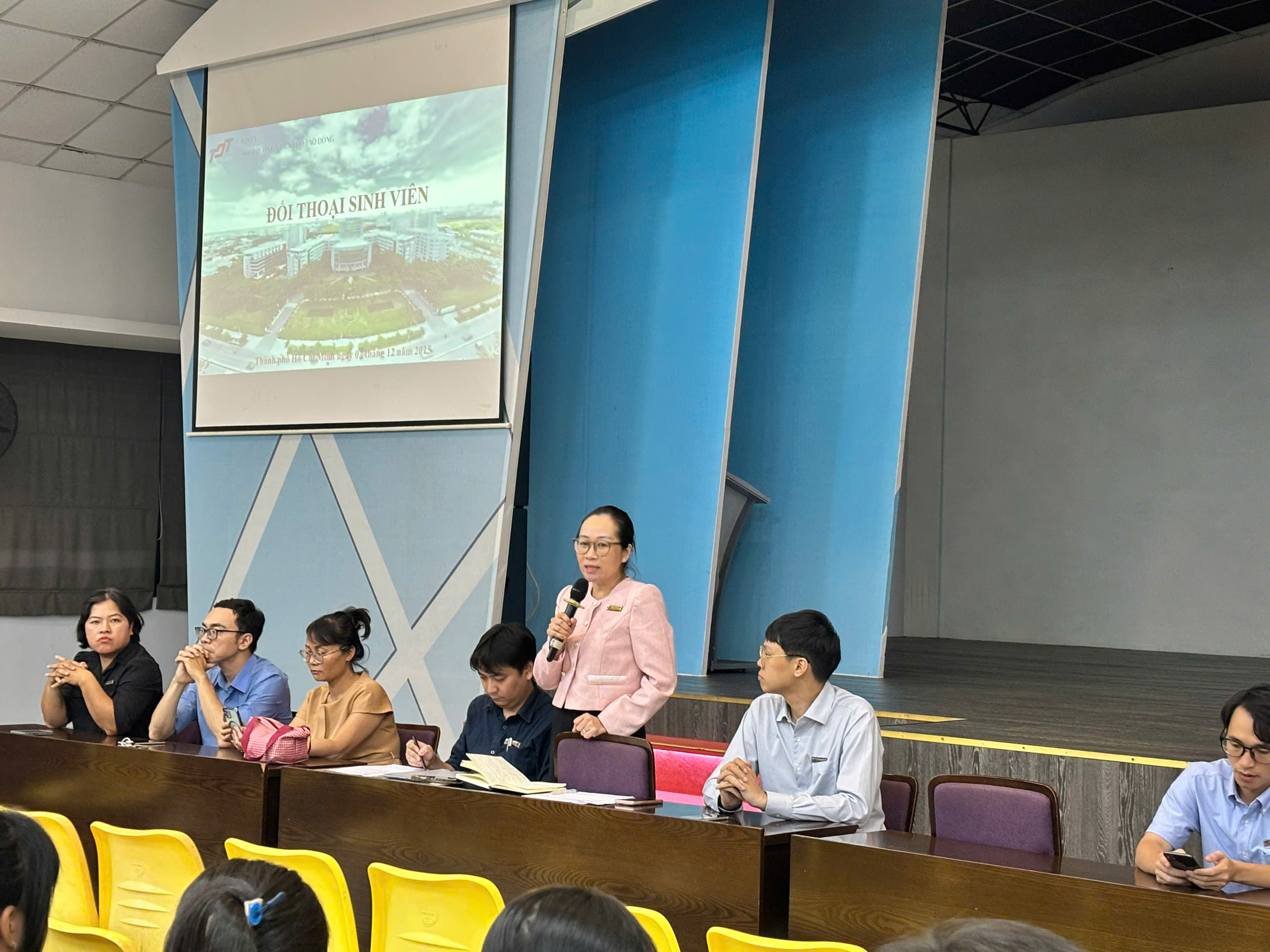 Buổi đối thoại được TS. Hồ Ngô Anh Đào – Trưởng khoa MT&BHLĐ chủ trì, nhằm thông tin đến sinh viên các quy định quan trọng của Trường và Khoa, cập nhật các hoạt động – sự kiện sắp diễn ra, đồng thời ghi nhận và giải đáp các thắc mắc liên quan đến học tập, rèn luyện và công tác sinh viên.