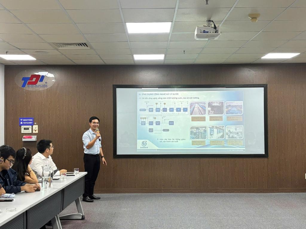 Trong phần trình bày, ThS. Trần Cường đã giới thiệu khái quát về lịch sử hình thành và phát triển của SAWACO, từ giai đoạn đầu dưới thời Đông Dương, quá trình mở rộng mạnh mẽ giai đoạn 2005–2024, đến các định hướng phát triển bền vững trong tương lai. Các nội dung chính bao gồm: