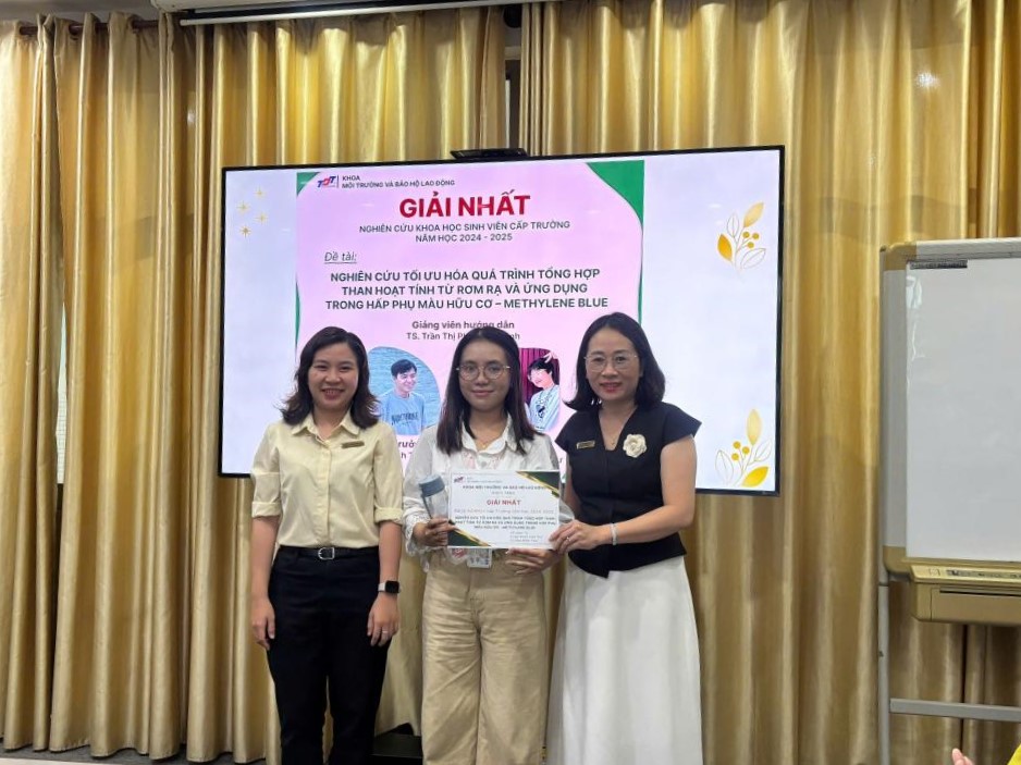 Tại buổi tọa đàm, Khoa đã tiến hành tổng kết kết quả NCKH sinh viên năm học 2024–2025 với 17 đề tài được thực hiện và được công nhận theo Quyết định số 2765/QĐ-TĐT ngày 13/8/2025 về việc công nhận kết quả nghiệm thu đề tài NCKH sinh viên. Trong số này, có 03 giải Nhất, 09 giải Nhì, 03 giải Ba và 02 giải Khuyến khích cấp Trường, đồng thời có 03 đề tài được lựa chọn tham dự Giải thưởng Sinh viên NCKH Eureka năm 2025.