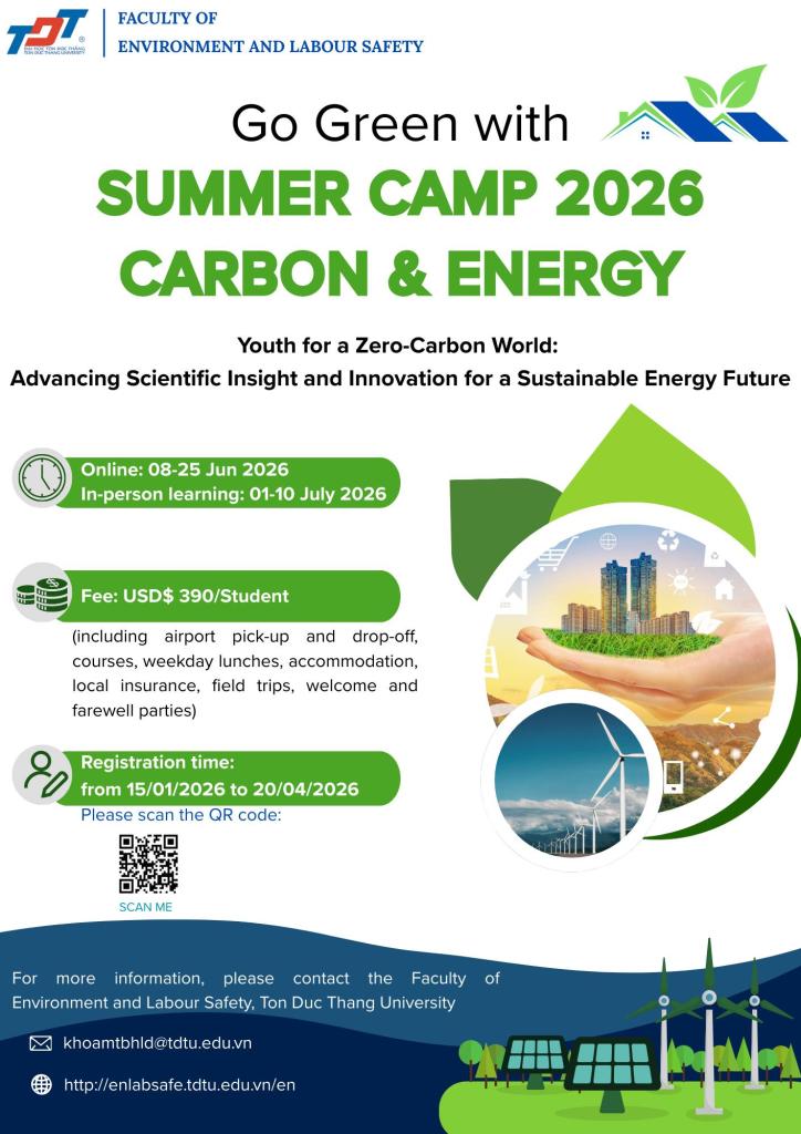 In response to the urgent global challenges of climate change, carbon emissions, and sustainable energy transitions, the Faculty of Environment and Labour Safety, Ton Duc Thang University proudly announces: